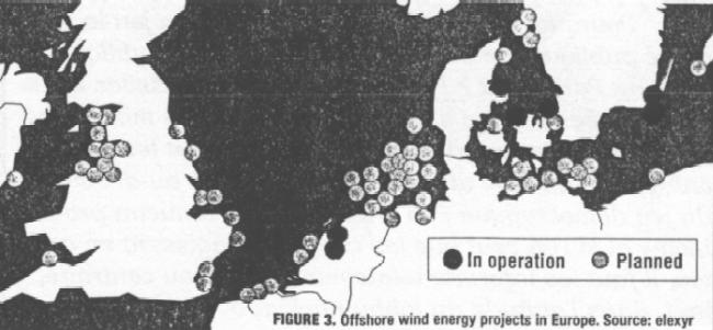 · La Californie montre l'exemple. Alors qu'à la sortie des pénuries criantes d'électricité, certains envisageaient un recours plus massif au nucléaire et avaient déjà planifié un ambitieux programme de construction de réacteurs, d'autres, plus lucides, ont réalisé que construire des éoliennes irait bien plus vite et coûterait infiniment moins cher. D'où des centrales offshore au large de la Californie et de l'Oregon mais aussi dans les déserts du Nevada. L'on s'attend à une production de 20% de l'électricité en provenance d'énergies douces, pour 2017 (SILENCE, mai 2003, p.25). · en Navarre, c'est 42% de l'électricité qui provient du vent: record mondial . 840 MW d'éolien y sont installés (contre 4.000 MW dans toute l'Espagne). Le plus grand parc compte 199 machines et produit 124 MW. 48 parcs éoliens sont déjà en service en Espagne, avec, pour assurer la protection des paysages des (petites) machines de 600 kW seulement (même source). |