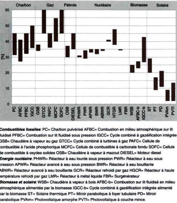 le rendement d'une centrale thermique "classique" et non pas celui d'une