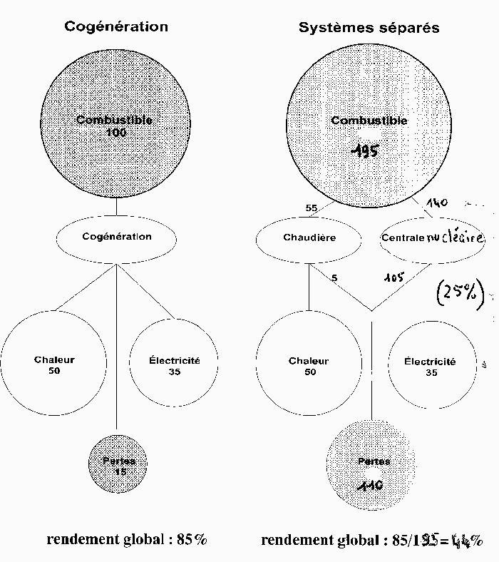 Pour fournir les mêmes quantités de chaleur utile et d'électricité