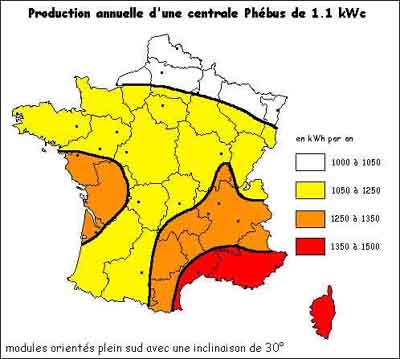 · Production annuelle d'une centrale de 1.1KWc (document Hespul):