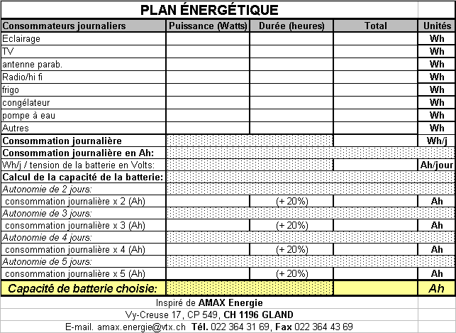 calcul d'une installation autonome
