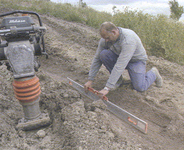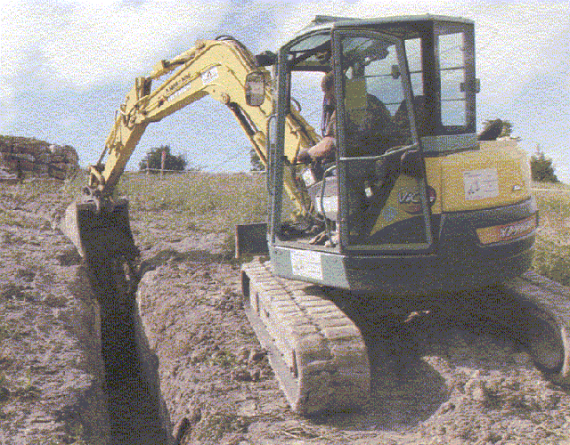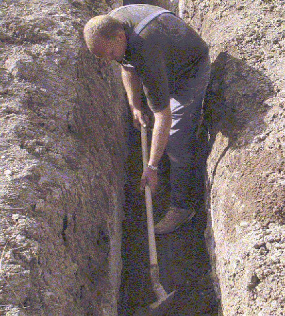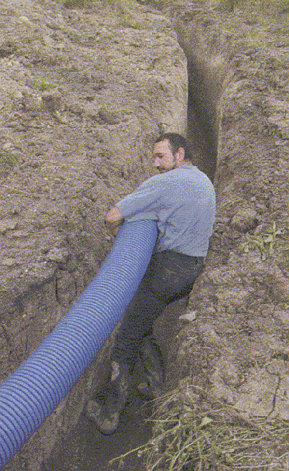 le tuyau est entouré de sable puis la tranchée rebouchée.