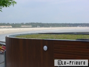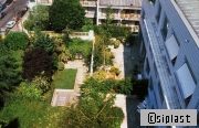 La toiture végétalisée, même si elle en est proche par certains aspects, ne doit pas être confondue avec les toitures-jardins: elle se présente comme un système d'étanchéité recouvert d'un complexe drainant, composé de matières organiques et de roches de type volcanique, qui accueille un tapis de plantes précultivées (sédum, vivaces, ou graminées qui peuvent cohabiter avec des bulbes ou des mousses). Par rapport à un toit en graviers, elle offre une surface vivante, qui change d'aspect avec les saisons et la floraison des végétaux, précisent ses concepteurs. Au premier rang des avantages, la rétention d'eau: l'urbanisation conduit à un accroissement des surfaces imperméabilisées et à un déficit d'alimentation de la nappe phréatique, en raison d'un manque d'infiltration. Evacuée trop rapidement par les canalisations, l'eau n'a pas le temps de s'évaporer et la chaleur en ville augmente. Comme une éponge, la toiture végétalisée accumule l'eau, dont une partie est absorbée par les plantes, une autre évaporée, et une autre évacuée par les canalisations avec un délai favorisant le bon écoulement, explique en substance Bruno Berthineau, expert au Centre scientifique et technique du bâtiment (CSTB). "Avec le réchauffement climatique et la multiplication des épisodes caniculaires, la toiture végétalisée participe à l'optimisation des performances thermiques des bâtiments et à l'amélioration hydrothermique des villes par la création de microclimats. Elles permet aussi d'absorber les polluants urbains et de diminuer ainsi la pollution atmosphérique", selon le CSTB. |