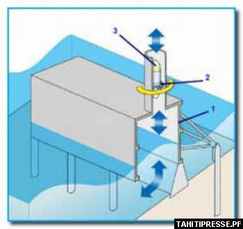 Cette centrale fonctionnera neuf mois sur douze, de mars à novembre, durant la période où la houle de Sud est forte au large de Papara. La production annuelle de la centrale sera "négligeable", puisqu'elle ne devrait pas dépasser les 500 kilowatts, soit "2.000 MWh/an", précise Régis Dautremont. Cette énergie sera revendue à l'EDT (Electricité de Tahiti) et devrait permettre d'alimenter environ cinq cents foyers. Développer l'énergie houlomotrice dans les archipels Mais l'île de Tahiti n'est pas la finalité de la SEDEP, qui prévoit plutôt de développer le projet dans les autres archipels de la Polynésie française. Le projet de la société est, à terme, de construire plusieurs centrales houlomotrices, dans les îles Sous-le-Vent notamment, afin de substituer aux centrales thermiques, qui fonctionnent au gasoil, un mode de production d'énergie "écologique". La SEDEP s'apprête également à développer l'énergie éolienne dans les îles de Polynésie française. Mercredi débutera à Makemo (archipel des Tuamotu) la construction de six éoliennes qui devraient fournir à elles-seules plus de 70% de l'électricité de l'île. La société étudie également le développement de la production d'énergie par utilisation de la biomasse, c'est-à-dire les déchets d'origine végétale, ou l'énergie thermique des mers (ETM). Ce système, qui fonctionne par récupération de l'eau froide en profondeur, est déjà expérimenté depuis 2006 par l'hôtel InterContinental Resort & Thalasso Spa de Bora Bora. |