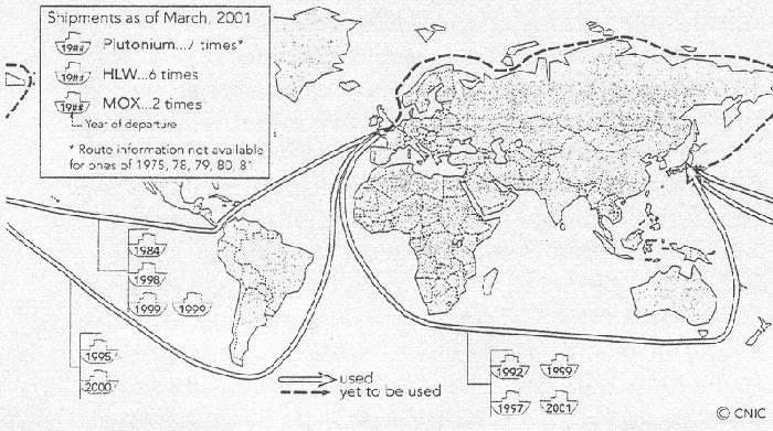 Le réacteur no3 de la plus grande centrale nucléaire d'Europe, en Ukraine, (six réacteurs de 1.000 MWe, plus puissante que les 7 réacteurs belges réunis) a été arrêté le 14 mars à 10h58 GMT, à la suite d'un léger dysfonctionnement dans son système de sécurité. Des niveaux de radioactivité supérieurs à la normale, dus à une fuite d'eau radioactive, ont été découverts le 5 décembre dans l'enceinte de la centrale nucléaire russe de Novovoronezh où déjà 2 réacteurs, sur six, ont été mis à l'arrêt définitif en 1988 et 1990 PIVDENNO UKRAÏNSKA Le réacteur no2 a été arrêté dans la nuit du 12 au 13 mars pour réparer de légers dysfonctionnements dans son système de génération de vapeur ou... d'un court-circuit survenu dans une ligne haute tension. La transparence est bancale. La centrale compte 3 réacteurs de 1.000 MW de fabrication soviétique (L'Ukraine compte une troisième centrale nucléaire à Rovno et un réacteur à Khmelnitski). USA: ATTENTION! Le manque criant d'électricité dans certains États des USA ont poussé les opérateurs à générer le maximum de courant dans les 103 réacteurs atomiques en service (contre 111 en 1990). La production, en 2000, s'est accrue de 3,5% par rapport à 1999. 20% du courant électrique américain est produit par l'atome. Mais, tant va la cruche à l'eau... JAPON Plus de 50 transports maritimes d'Europe (La Hague et Sellafield) vers le Japon sont encore à effectuer. En mars il y eut 7 départs de plutonium, 6 départs de déchets hautement radioactifs et 2 départs de MOX (fabriqué en Belgique). ![]() (suite)