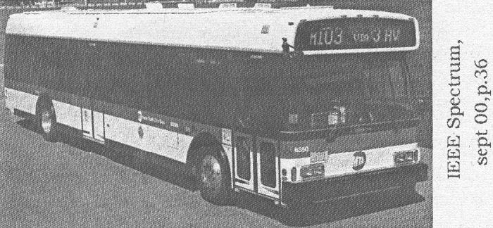 C'est aujourd'hui quelque 20% de la population mondiale qui est responsable de 60% de la consommation d'énergie. Les habitants de l'Europe de l'ouest et des Etats Unis consomment, chacun, 7 fois plus d'énergie que ceux d'Asie. Ce gaspillage d'énergie a causé et causera encore des dégâts sérieux au climat et à d'autres aspects de l'environnement. Les changements de dimat et ces toujours plus de 2 milliards d'êtres, sans accès à l'énergie, posent de sérieux problèmes. Il est temps que cela change. "EASYMOVE" C'est le nom d'un système qui, depuis 7 mois, permet, au départ des gares de Lugano, Locarno, Bellinzone, Mendrisio et Chiasso, de louer une voiture électrique. Le véhicule peut être restitué dans l'une quelconque des gares citées. Issue d une collaboration entre Autonoleggio Sud SA, les CFF et I'InfoVEL de Mendrisio. Cette initiative, par sa faible consommation en énergie, l'absence totale de rejets polluants et son fonctionnement silencieux contribue grandement au "way of life" amélioré de ces régions fortement peuplées du Tessin. Caractéristiques des véhicules: Autonomie d'une charge, 60 à 80 km. Recharge à 50 % de la capacité des batteries: 2 heures. Nombre de postes de charge publics: 50. Prix (forfait) par jour 2.574 FB (électricité comprise). Pour les courtes durées: 67,50FB l'heure plus 39 FB/km. Consommation électrique moyenne 25,3 kWh aux 100 km ce qui correspond à 176 FB/ 100 km (contre + 270 FB/ 100 pour une petite voiture à essence (Energie Extra, octobre). Nous nous devons de signaler que quelque 15 % de l'électricité suisse est hydraulique!) HybriDrive est le nom des cinq bus à propulsion hybride, c.à.d. diesel-électrique, qui sillonnent, depuis 1998, les rues et avenues de New York. Ce programme expérimental a démontré qu'ils sont plus économiques à exploiter que les bus diesel conventionnels. Si, au point de vue pollution de l'air, les émissions de NOx ont été réduites de 50% et celles des hydrocarbures de 99%, la consommation moindre de gasoil: 50%, et l'absence d'ennuis mécaniques (ni boîte de vitesses, ni différentiel, ni arbre de transmission et remplacement moins fréquent des garnitures de freins) ont poussé la MTA (Metropolitan Transit Authority) à en commander 125 autres pour 2001 et 250 autres d'ici 2005. Construits par Lockheed Martin, à Johnson City (NY), ils sont longs de 12,20 m, transportent 40 passagers assis et 37 debouts, et possèdent un générateur diesel, tournant à un régime le plus économique et le moins polluantpossible, de 187 kW, qui alimente deux moteurs électriques en courant alternatif situés dans les moyeux des roues arrière. Quelques batteries-tampon aident à franchir les fortes pentes. MÉTHANE Le charbon recèle bien du méthane (CH4), ce gaz incolore, léger, mais toxique (*) qui se dégage des marais et dont les bulles viennent crever à la surface. (suite)