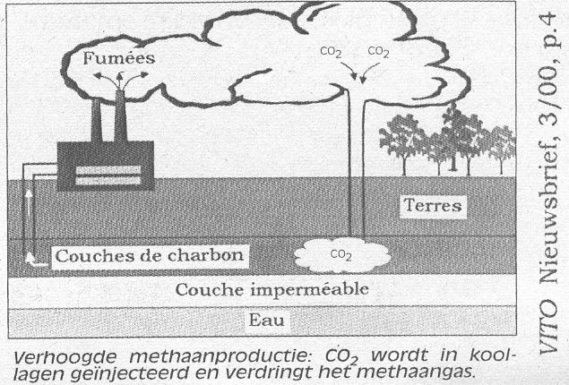 C'est le fameux grisou des mines et aussi le constituant principal du gaz naturel. On peut simplement l'aspirer, mais un meilleur résultat a été atteint, dans les mines encore inexploitées de Campine et fissurant les couchès de charbQn et en éjectant le méthane sous la pression de C02 émanant des usines proches. Cela a été réalisés à Peer, en 1993. Le VITO, de Mol, reprend actuellement les essais pour en étudier la faisabilité et les paramètres économiques. (*) Jadis les mineurs emportaient un canari au fond des galeries. L'oiseau, plus sensible que l'homme, avertissait, par l'arrêt de son chant, de l'imminence d'un coup de grisou. 1 litre / 100 km!