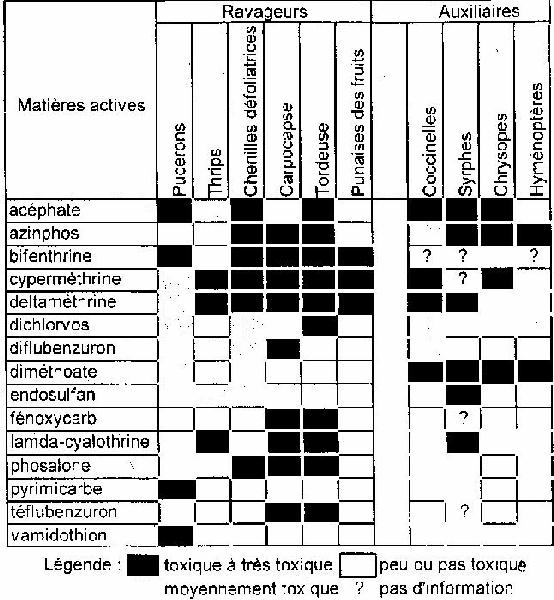 Voici, selon Phytoma 1992, les effets secondaires de quelques matières