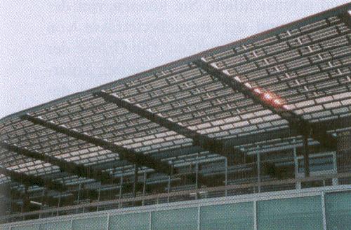 den Beschattungselementen. Zwischen den gut 10 m langen Querträgenn