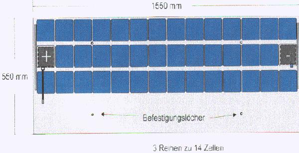 das resultierende Modul mit 3 Zellreihen zu 14 Zellen im oberen Bereich
