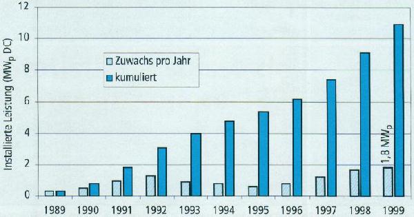 Erstmals lieferten im Jahr 1999 Photovoltaikanlagen