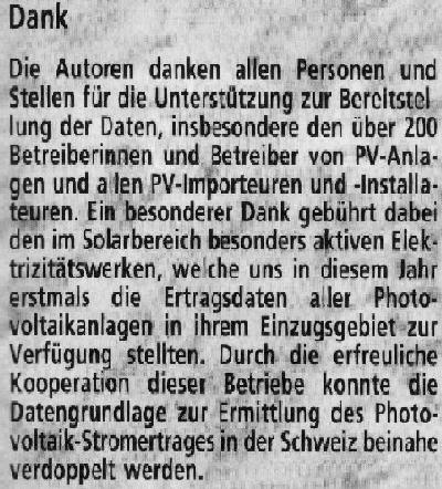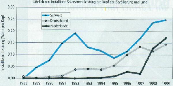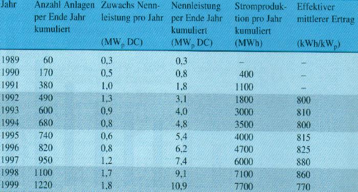 ausfiel. Ende 1999 waren in der Schweiz rund 1220 Photovoltaik-Netzverbundanlagen