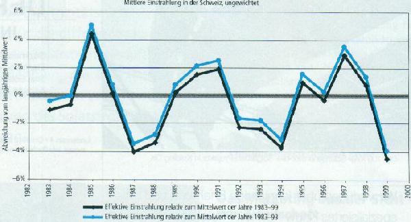 1999 zu sehen. Die mittlere Sonneneinstrahlung lag 1999 rund 5% unterhalb
