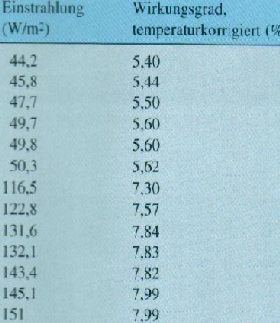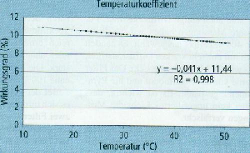 sein. Der Temperaturkoeffizient des Wirkungsgrades liegt mit -0,043%/0Crelativ