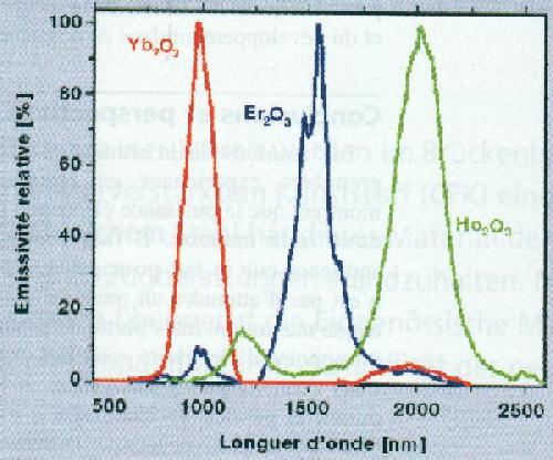 Fig.2 Caractéristiques spectrales des oxydes de terres rares Fig.3 Emetteur à l'essai (Yb2O3)