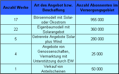 zu Solarstrom (Tabelle 1). Die Angebote und die Modelle zur Beschaffung