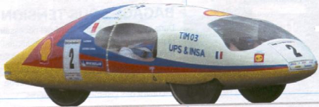 en véhicule solaire. La voiture de l'équipe baptisée