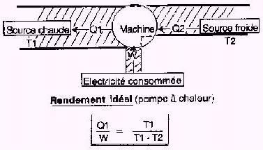 (mécanique) W, la machine fait revenir la chaleur de la source froide