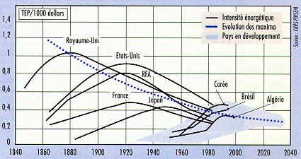 Parenthèse: puisqu'on parle et du nucléaire et de l'efficacité, il est temps de mettre le doigt sur un point ignoré (ou caché!?): les gains d'efficacité énergétique ne progressent plus guère depuis environ la fin des années 80; mais pire, depuis 1991, alors que la courbe continue néanmoins à s'améliorer au Japon, aux Etats-Unis ou en Allemagne, elle s'inverse en France: