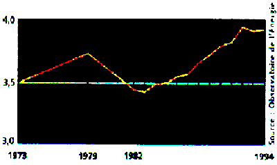 Le nucléaire est (semblait être!) devenu une source attrayante d'électricité pour les pays riches. Mais la production d'électricité ne cessant aussi d'augmenter, loin de répondre à un besoin, elle crée du besoin: lorsqu'on regarde les performances des pays de l'OCDE sur la décennie 1986-1996 [124 ], on s'aperçoit que la France a augmenté sa production totale d'électricité de plus de 40% (l'Allemagne de 5,5% seulement) dont la production de 5 à 7 tranches du parc est exportée [125 ].