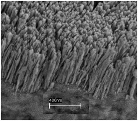 une couche de nanobarreaux de cuivre recouvrant le fond d'un récipient