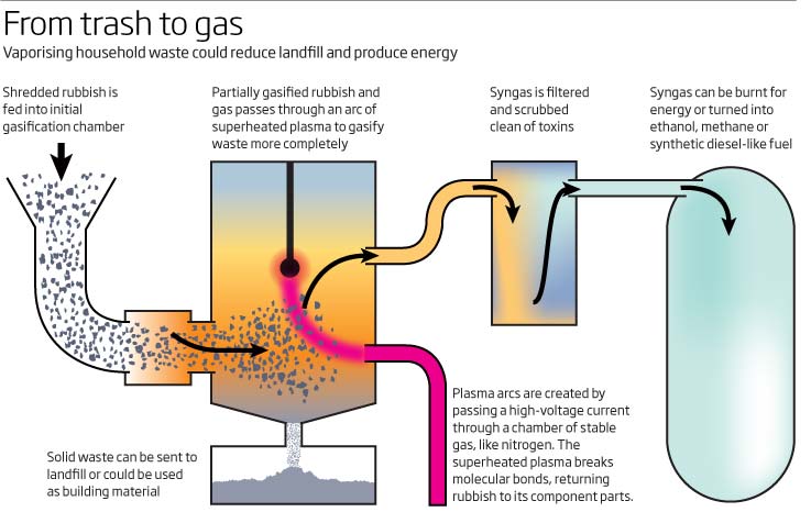 working on gasification - a process that zaps household waste into energy