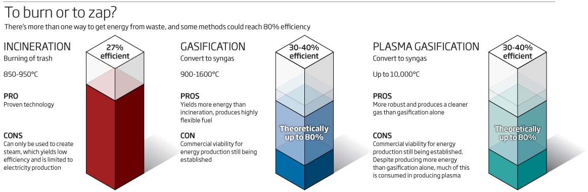 Plasma gasification vaporises waste at much higher temperatures - up to