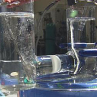 and oxygen. The device uses an inexpensive catalyst that he has developed.