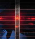 les rayons rouges du laser sont redirigés du fil vers la surface