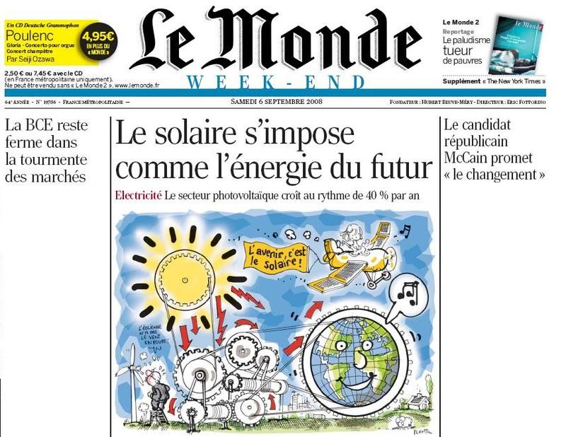 Quelle fête! Les industriels et scientifiques du photovoltaïque n'en finissent pas de s'étonner: jamais ils n'avaient été aussi nombreux à se réunir. La 29e Conférence de l'énergie solaire photovoltaïque, qui s'est achevée vendredi 5 septembre, à Valence (voir page ci-après), a réuni plus de 4.000 chercheurs et un millier d'exposants. Cette affluence est à l'image d'un marché qui a explosé depuis plusieurs années, à la suite de l'instauration en Allemagne, en 2000, d'un tarif de rachat avantageux de l'électricité produite par les panneaux solaires.