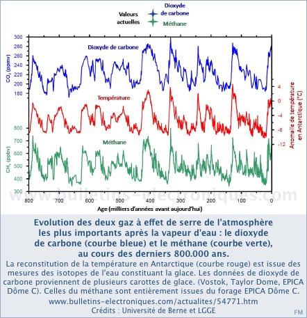de carbone et méthane jusqu'à 800.000 ans, soit 150.000 ans