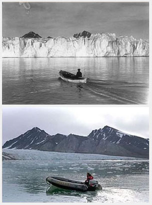 Photos du glacier Blomstrand (Spitzberg) en 1918 et de nos jours. «Aujourd'hui, nous devons admettre