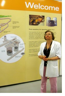 Anneli Nikula Photo, Angela Steen Cette question a été au centre des débats lors de la construction d'Olkiluoto 3. Les piscines noires ne devaient être que des décharges temporaires pour les milliers de tonnes déchets que les deux premiers réacteurs ont déjà produits. Mais le troisième réacteur devait en ajouter d'autant plus. Il n'y avait qu'une solution: l'enfouissage. «Les déchets sont enterrés ici», continue Anneli Nikula alors qu'un bus de la centrale nous conduit à travers des tunnels. 500 mètres sous la couche rocheuse, nous pouvons voir les coffres de cuivre qui contiennent des déchets hautement radioactifs. Un message d'information est accroché à la paroi grise: «Les substances radioactives ne peuvent pas contaminer la nature», disent les panneaux. Un peu plus bas, il est ajouté que «la radioactivité des déchets disparaît assez rapidement», et enfin «en quelques siècles».