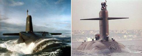 «Le Triomphant» (à droite), est entré en collision avec un sous-marin à propulsion nucléaire britannique, le «HMS-Vanguard» (à gauche). Les bâtiments français «Le Triomphant» et britannique «HMS-Vanguard» se sont heurtés début février, selon The Sun. Un accident rarissime confirmé par le ministère français de la Défense. C'est un accident rarissime qui s'est produit au début du mois de février au milieu de l'Atlantique, révélé par le quotidien britannique The Sun. Un sous-marin à propulsion nucléaire français, «Le Triomphant», est entré en collision avec un sous-marin à propulsion nucléaire britannique, le «HMS-Vanguard». Les deux bâtiments effectuaient alors en immersion deux missions séparées. L'information a été confirmée par le ministère Français de la Défense ainsi que par la marine britannique.