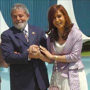 Lula et Cristina, copains comme cochons Le président d'Industrias Nucleares du Brésil, Alfredo Tranjan Filho, a déclaré au périodique O Estado de São Paulo qu'il "serait plus efficace de créer une entreprise nationale large, qui se consacre non seulement à l'enrichissement de l'uranium mais aussi à d'autres opportunités et besoins des pays et du marché élargi d'Amérique du Sud dans les domaines de la santé, de l'agriculture et de la radiologie". La compagnie se positionnerait comme un des fournisseurs mondiaux d'uranium enrichi, ce qui est un des objectifs du gouvernement brésilien, selon Tranjan. «En plus des projets du Chili, de l'Uruguay, du Pérou et du Venezuela d'installer des centrales nucléaires, l'Argentine compte sur deux usines en service, entend achever Atucha II et prévoit de construire deux autres usines. Le Brésil maintient Angra I, Angra II, et construira Angra III en 2014 et 6 autres usines d'ici 2030.»