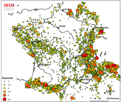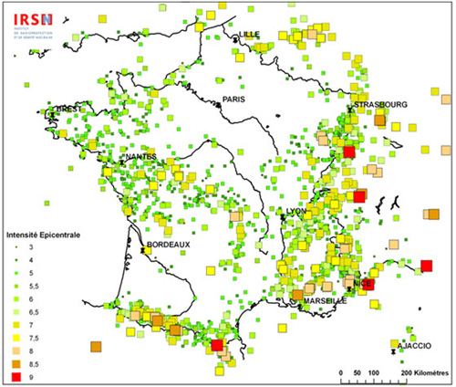 le territoire métropolitain ne connait qu'une sismicité modérée,