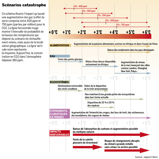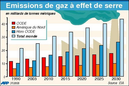 Les émissions mondiales de gaz à effet de serre fin 2004 | Evolution gaz à effet de serre | "Scénario catastrophe" du rapport Stern