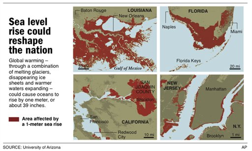 USA: surfaces affectées par l'augmentation du niveau de la mer | Les plus