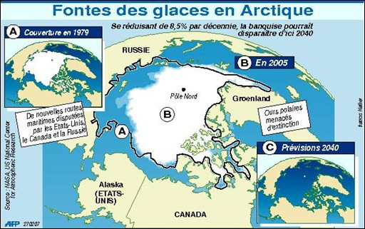 | Un tiers des côtes africaines affectées d'ici 2100 | diminution de la banquise arctique 1985-2008 | Températures