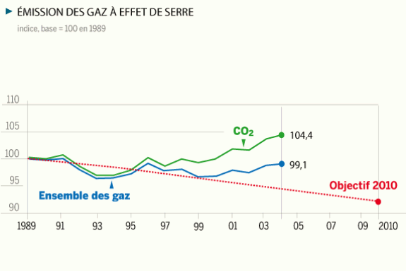en 2003 16% de gaz carbonique en plus qu'en 1990, atteindrait le chiffre