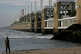 gigantesque coupé par l'île artificielle de Neeltje Jans.