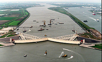 le barrage anti-tempête construit sur l'Escaut oriental. Un pont