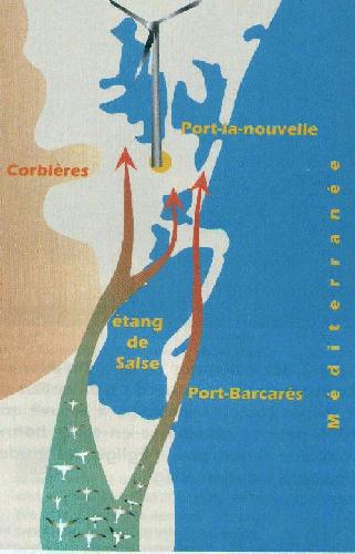 tramontane, vent dominant de nord-ouest, qui concentre les oiseaux sur