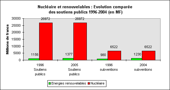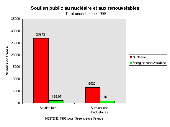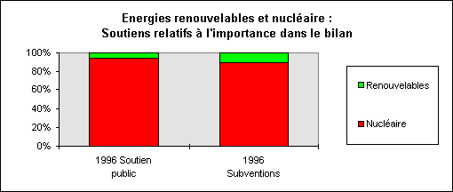 L'étude montre notamment le poids écrasant du soutien au nucléaire par rapport à celui accordé aux énergies renouvelables: le soutien aux énergies renouvelables ne représentant qu'entre un et quatre pour cent du soutien apporté au nucléaire.