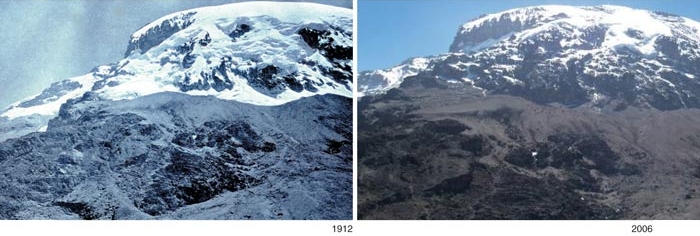 atop Kilimanjaro in tropical East Africa (bottom), despite its new role