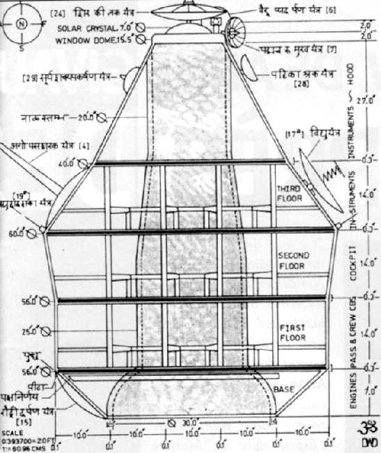 Lanka, comme nous le savons, avait été attaquée et conquise par les forces de Rama, mais la bataille, bien que sanglante, n'avait pas signifié la fin définitive de la ville. Dashagriva, le tyran de Lanka, appartenait à la dynastie Ravana, une race qui avait régné pendant 600 ans sur les Rakshasas. Il avait presque quarante-cinq ans et il possédait - pour l'avoir volé au roi légitime Dhanado, qu'il tua ensuite - un Pushpaka Vimana, un vaisseau spatial qu’il gardait dans la cour du palais. La cour existe encore aujourd'hui à Mohenjo-Daro. Une fois destitué l'usurpateur, Rama le remplaça sur le trône par l'un de ses disciples, Bibishamina, le frère cadet de Dashagriva. Par la suite, à bord du Pushpaka Vimana, il laissa Lanka pour se diriger en vol vers Ayodhaya, la ville de son père Dasaratha". |