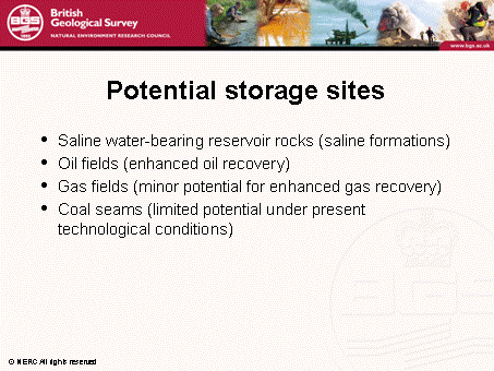 Potential storage sites