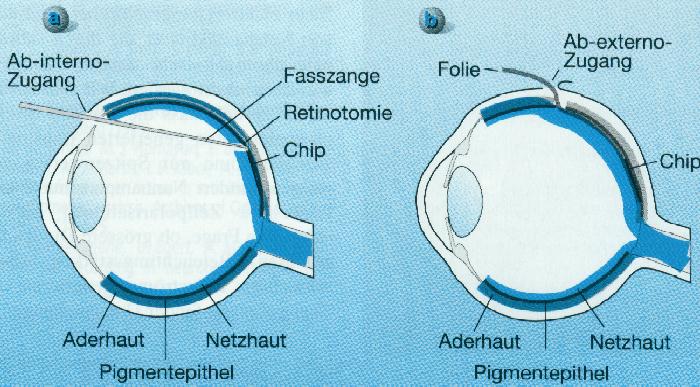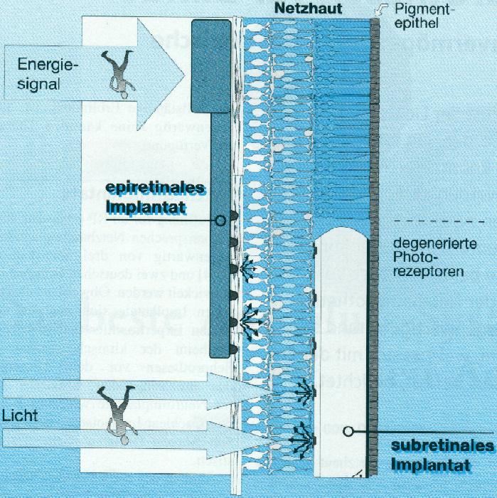 Netzhaut anstelle der Photorezeptoren (subretinal) implantiert oder in