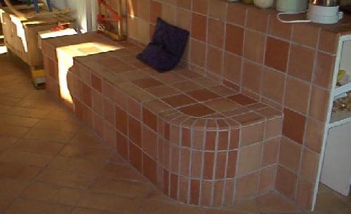 cèdent leur chaleur en passant par un banc chauffant en carreaux