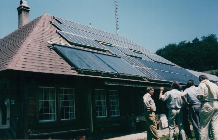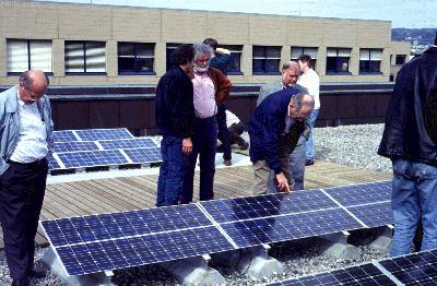 · Architecture Durable: éloge de la terre - Festival Grains d'Isère – CRA Terre - ENSAG · Bâtiment de l'OMM-WMO (Organisation Mondiale de la Météo, Genève), mardi 11 mai · Parking de l'Etoile, alimentation des TPG (transports publics genevois) et d'une installation vinicole (Genève) · Démonstration d'auto-construction de panneaux solaires thermiques (TERRAWATT-SEBASOL), 14-15 juin, Plaine de Plainpalais, Genève, "journées du Développement Durable" · Une nouvelle maison solaire auto-construite et "décortiquée" intégralement: technique, choix, bilans, etc. (Toulouse) · Une maison solaire, avec analyse des consommations et schémas d'installation (Lorraine) · En lisière de Rhône-Alpes (Embrun - Htes Alpes), j'ai rencontré l'architecte Boissel Eric qui m'a autorisé à numériser sa documentation architecturale où figure aussi celle de son restaurant panoramique sur le lac de Serre-Ponçon, (superbe) vitrine de ses activités! · Transformation d'une voiture standard en véhicule électrique – Dyane 1973 · Ecole du Bosson à ONEX – Canton de Genève: équipement PV · Salon ENERGIE MONTAGNE à THIEZ (Cluses F-74) suivi de la visite d'une maison à solaire thermique VISITES REALISEES: · Notre "fontaine solaire" (visible à la cafeteria du CERN)! · Les bateaux solaires du lac de Neuchâtel · Refuge bioclimatique des Conscrits CAF Les Contamines (Mont Blanc): solaire thermique et PV, éecupération d'eau de fonte · Barrage de la Grande Dixence · Rade solaire de Genève · Ferme éolienne de Goulien au Cap Sizun (Lorient, Bretagne) 31 mars · Sunwatt Bio Energie (Genève) a mis en place un circuit touristique sur le thème des applications solaires PV en bordure du Léman, tél +41 22 348 73 66, fax +41 22 348 73 53; à voir également des photos de la plus puissante installation PV raccordée au réseau d'un particulier: photo1, photo2, photo3 (10KWp chez Mr. Secreton à Haberpoche en France, 90 modules Isofoton I-110, 4 onduleurs SMA SWR 2500, production 10.4 MWh/an); en instance de 10KWp à Genève qui seront installés chez John Dupraz à Soral (avril 2001) · Salon des Energies Renouvelables à Lyon (mars 2001) · L'école du Bosson à Onex (Ge) équipée de PV raccordé au réseau · Maison "merveille-minergie" de Mme et Mr GUISAN à La Tour de Peilz ; article dans Le Temps 2000 · Stations d‘épuration des communes de Sallanches et Carroz d‘Arâches (Haute-Savoie) · Auberge de Cenise , juillet 2000, Petit-Bornand (Haute-Savoie) · Mini-centrale hydraulique , juin 2000, Sixt (Haute-Savoie) · Ecole d'ingénieurs d'Yverdon , mai 2000: Programme de simulation solaire, Installations solaires combinées, Cuve à stratification, Réfrigérateur solaire à adsorption, Comparaison entre 2 systèmes de réfrigération solaire : adsorption et photovoltaïque; en complément, visite d'une maison autonome et 0% de demande en énergie fossile! · Salon Bois-Énergie 2000, avril 2000, Institut du Bois-énergie, Lons-le-Saunier · L'autoconstruction en solaire thermique, par l'association SOLAR SUPPORT (site en allemand ICI ), février 2000: ce n'est pas une visite à proprement parler mais permet de voir des constructions et qui plus est, chiffrées. · QUELQUES PHOTOS DE NOTRE VISITE A L'EPFL AU PRINTEMPS: ![]() ![]() ![]() ![]()